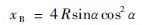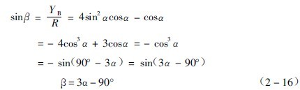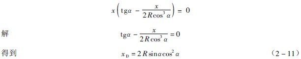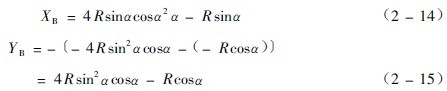 確定B點(diǎn)的坐標(biāo):B點(diǎn)是鋼球拋落的終點(diǎn),也是它開(kāi)始圓運(yùn)動(dòng)之點(diǎn),所以它的坐標(biāo)xb和yb即公式(2-6)和(2-7)聯(lián)立時(shí)的公解。將公式(2-7)中的y代入公式(2-6)中,然后逐步化簡(jiǎn),得到