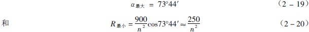 時R 的水平投影XB為極小值。由引可見,對目前所論述的問題說,這兩個極限值只有意義,它是與最小球?qū)影霃絉最小相對應(yīng)的最大脫離角a最大。于是,判斷球?qū)颖3置黠@的圓運動和拋物線運動的極限狀態(tài)的兩個相關(guān)連的指標是