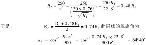 此處的K為內(nèi)層球半徑與外層球半徑之比,或內(nèi)層球的與外層球的脫離角的余弦之比。當最外層球的半徑被看作即磨機的半徑時,它就是最內(nèi)層球的半徑與磨機內(nèi)半徑之比。顯然,K標志裝球率,因為裝球愈多,R2愈小,K 值也就較小。由公式(2-5)可知