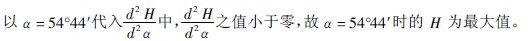 在拋落式工作的磨機(jī)中,磨礦作用主要來(lái)自鋼球落下時(shí)的動(dòng)能。此動(dòng)能的大小,與鋼球的落下高度(H)有關(guān),而鋼球的落下高度又決定于磨機(jī)的轉(zhuǎn)速。根據(jù)前面的論述,必然可從鋼球更大落下高度來(lái)決定磨機(jī)的合適轉(zhuǎn)速。照此理,將公式(2-29)取導(dǎo)數(shù),并令它等于零,就可以求出使鋼球有拋物落下高度時(shí)的脫離角,再?gòu)乃业较鄳?yīng)的轉(zhuǎn)速。