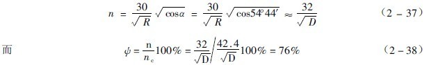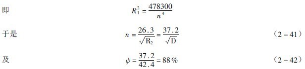 應(yīng)用公式(2-36)來(lái)決定轉(zhuǎn)速時(shí),有兩種方法。首先用外層球有落下高度來(lái)定轉(zhuǎn)速。若取外層球的半徑即磨機(jī)的內(nèi)半徑,由公式(2-2)得到