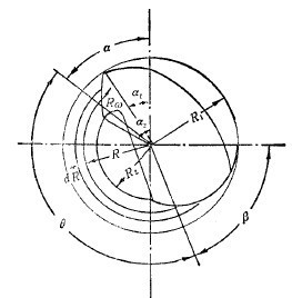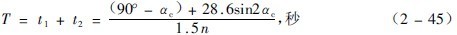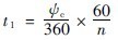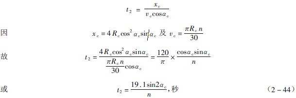 磨機(jī)一直是作圓運(yùn)動(dòng)的,但其中的鋼球的運(yùn)動(dòng)軌跡,一部分是圓曲線,另一部分是拋物線。因此,磨機(jī)轉(zhuǎn)一轉(zhuǎn),鋼球的運(yùn)動(dòng)未必也就是一個(gè)循環(huán)。從圖3-2-10可以看出,鋼球從脫離點(diǎn)A真拋到落回點(diǎn)B,比圓運(yùn)動(dòng)快,因而鋼球總是超前的,換句話說(shuō),磨機(jī)轉(zhuǎn)一轉(zhuǎn)時(shí),鋼球不只循環(huán)運(yùn)動(dòng)一次。設(shè)%"是鋼球作圓運(yùn)動(dòng)的時(shí)間,當(dāng)磨機(jī)轉(zhuǎn)一轉(zhuǎn)時(shí),用同樣速度作圓運(yùn)動(dòng)的鋼球轉(zhuǎn)過(guò)的圓心角為