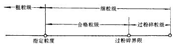 試驗方法中的一個重要問題在于,如何判定磨礦效果的好壞。就以生產(chǎn)率而論,達不到指定級別(如0.074mm或其它粒度)的稱為“粗級別”,達到指定級別及以下的稱為“細級別”,而細級別中又包含“過粉碎”級別,幾者之間的關(guān)系可表示在圖3-5-2中。