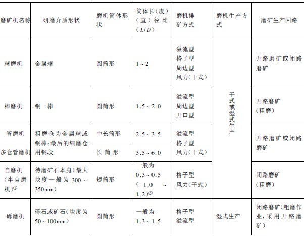 圓筒型磨機(簡稱磨機)規(guī)格以筒體內(nèi)(直)徑和內(nèi)長(度)尺寸表示。工業(yè)生產(chǎn)中廣泛應(yīng)用的磨機種類很多,分類方法亦不相同,有的按照研磨介質(zhì)的形狀分類,有的根據(jù)筒體形狀分類,有的按排礦方式分類,也有根據(jù)磨礦生產(chǎn)方式分類。