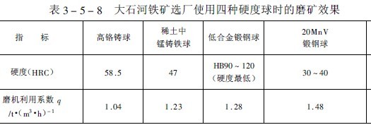 2)不同硬度鋼球之間磨機利用系數(shù)(即容積生產(chǎn)率)可相差20%~40%,說明硬度對磨機生產(chǎn)率的影響是相當顯著的,單純追求高硬度低球耗而忽視生產(chǎn)率降低是不可取的。