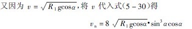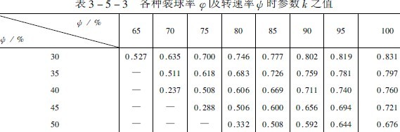 有關(guān),k可直接由表3-5-3中查取。又D0=2R0,則“中間縮聚層”上的一個(gè)球落到落回點(diǎn)襯板上的法向沖擊動(dòng)能En為
