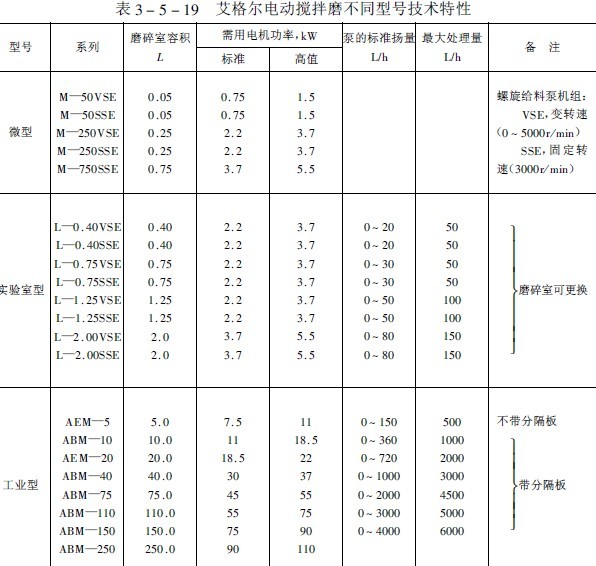 的轉(zhuǎn)動(dòng)形成了筒繞Ⅰ號(hào)軸的公轉(zhuǎn);Ⅱ號(hào)輪帶動(dòng)Ⅵ號(hào)輪形成磨筒繞其自身軸的自轉(zhuǎn)。這種磨機(jī)兼有行星磨和振動(dòng)磨二者的特點(diǎn),具有高頻沖擊和磨剝的雙重作用,故磨碎作用強(qiáng),是一種有效的超細(xì)磨碎設(shè)備。表3-5-20示出了用該磨機(jī)磨碎鋯英石和工業(yè)氧化鋁的產(chǎn)品粒度分布。