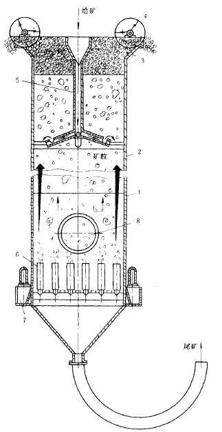 2)尾礦管堵塞。這是操作中容易發(fā)生的故障。原因多是由于礦漿中的礦石粒度太大,或者因給礦量突然增大和尾礦管閘門開的太小以及柱中落入其它雜物。排除方法:應事先在排礦管下端的適當位置安裝高壓水管或高壓風管,一旦發(fā)生堵塞,可用高壓水或壓縮空氣來疏通。并檢查粒度與給礦量,至調到正常為止。