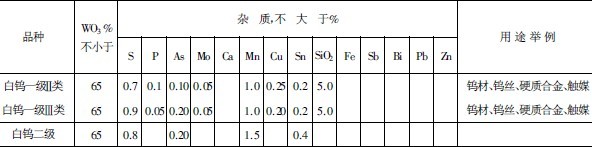 上述情況表明,冶煉對鎢精礦的質量要求是非常高的。但市面上并無統(tǒng)一標準,通常是冶煉廠根據(jù)自己所具備的工藝條件,來選購所需的鎢精礦?,F(xiàn)將我國及世界有關國家所擬定的鎢精礦質量標準,分別列表于后。表9-2-28為我國鎢精礦質量標準,同時還規(guī)定可根據(jù)用戶需要和資源特點,自訂企業(yè)標準,這可使生產(chǎn)單位和使用單位在執(zhí)行標準時有靈活性。