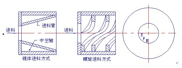錐體進(jìn)料方式和螺旋進(jìn)料方式如下圖。